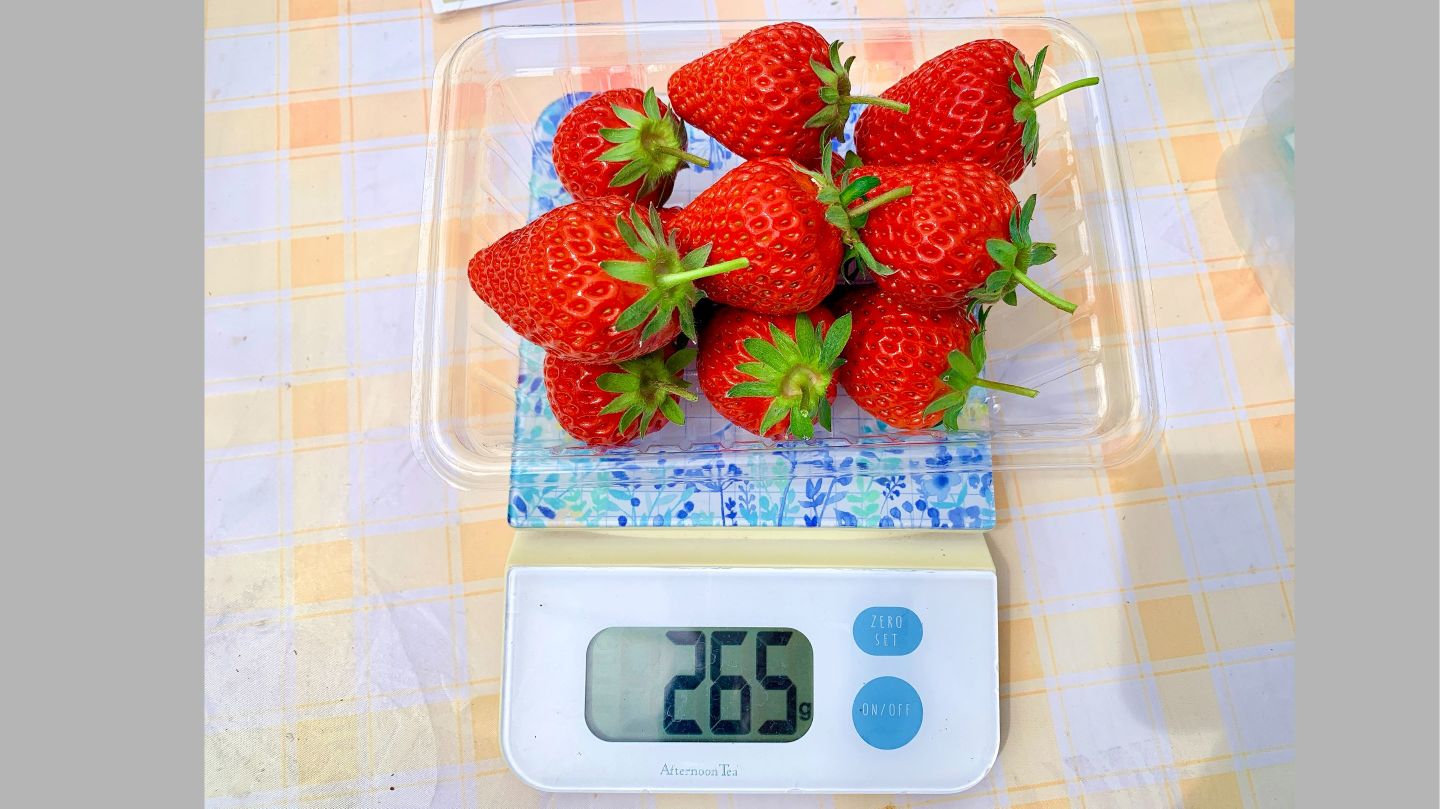 料金に含まれている1パック250gの目安です(容器の重さが約10gほどあります)。収穫が終わりましたら、受付までパックをお持ちいただき、スタッフによる計量になります。