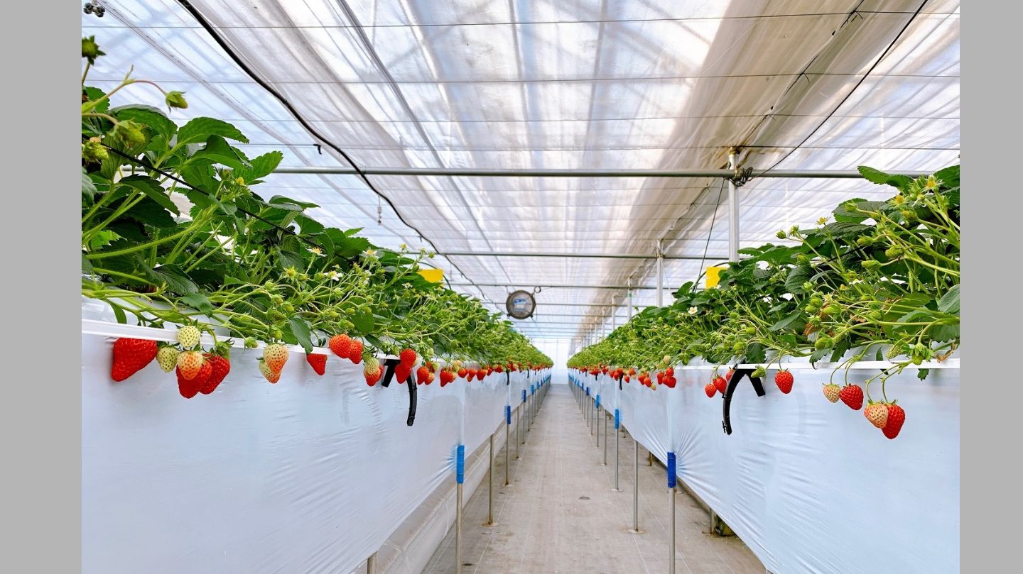 レーンの奥の方に、大粒で完熟のいちごがたくさんございますので、ハウス内に入られましたら、突き当りまでお進みください。